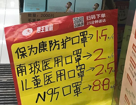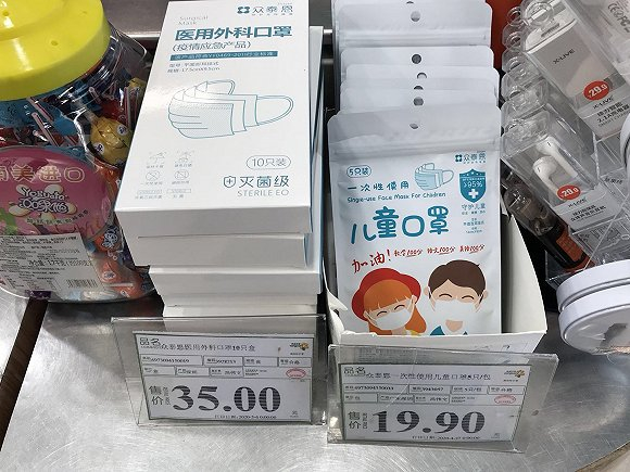 在超市、药店和便利店销售的口罩。图片来源:吴容