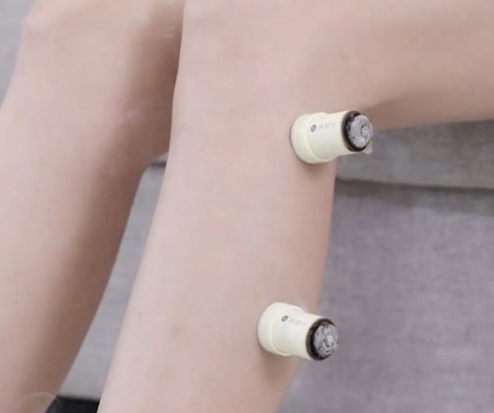 小筒灸底座是3M压敏胶,撕下防粘膜,就可以牢牢地固定在皮肤上,哪里疼就灸哪里,完全不会掉。