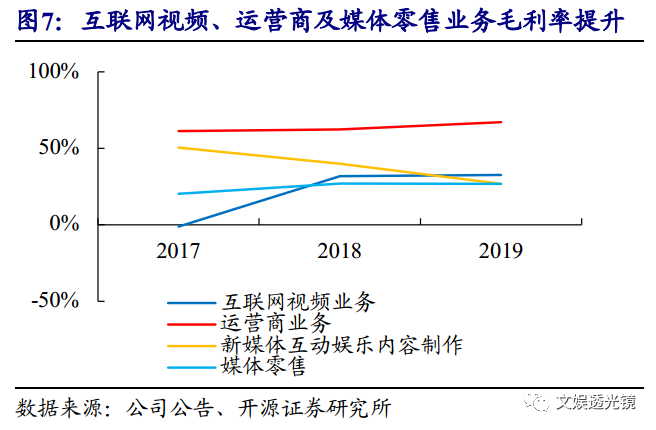 核心构成为内容制作及运营、艺人经纪、音乐版权、游戏及IP内容互动营销。基于影视行业整体环境影响和2020年疫情影响,内容制作相对谨慎,假设收入增速有所趋缓。