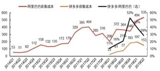图2:阿里巴巴、拼多多新增活跃用户成本对比(单位:元/人)