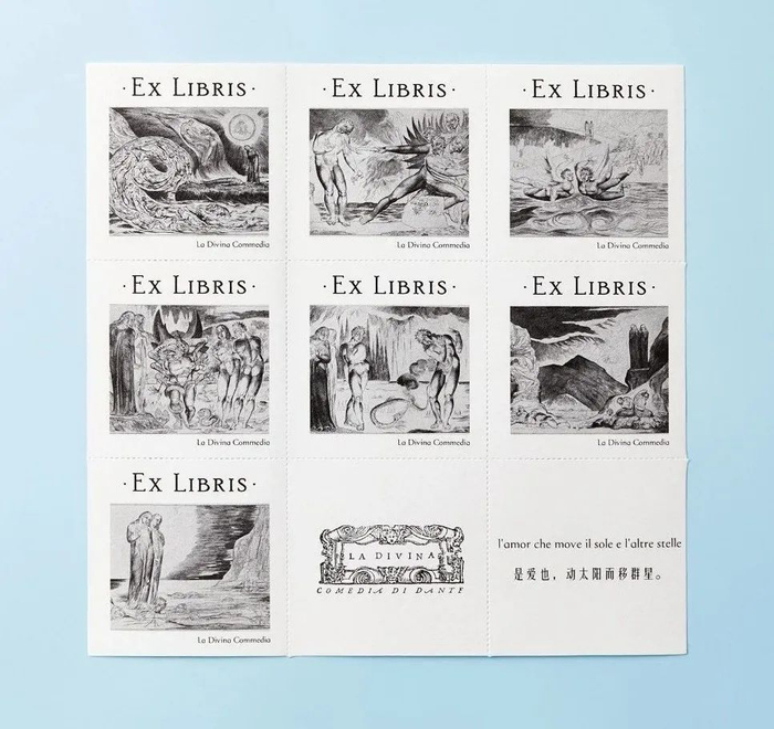 还有威廉·布莱克专为《神曲》绘制的全套藏书票,共7张。