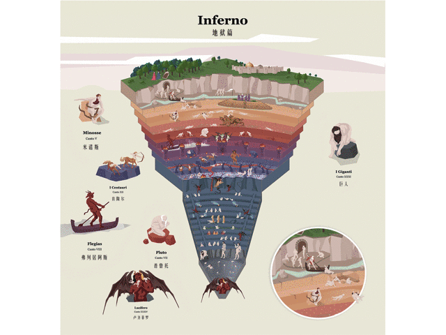 在导师维吉尔的指引下,他历经地狱、净界、天堂三界,找到走出迷津的道路,完成这场“灵魂修炼之旅”。