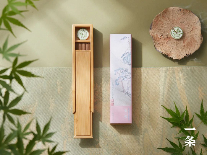 线香为竹盒包装,内含20g线香和圆形香插1个。