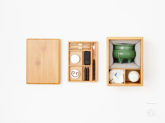 篆香礼盒是独特的双层收纳装置,便于外出雅集携带。