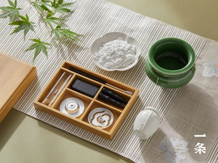 内有全套篆香工具,包含瓷香炉、灰压、篆模、香锹、篆香粉、篆香灰、短线香,打火机等,非常适合新手入门。