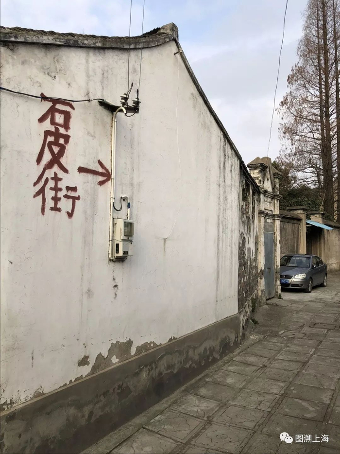 位于中山西路北侧。东起上师大附属外国语中学(原松江师范学校)西垣,西至泾北街。长约80米,宽约3米,狭处宽仅2米。水泥路面。因原系长方块石皮(石板)路面,故名。为居民区干道。