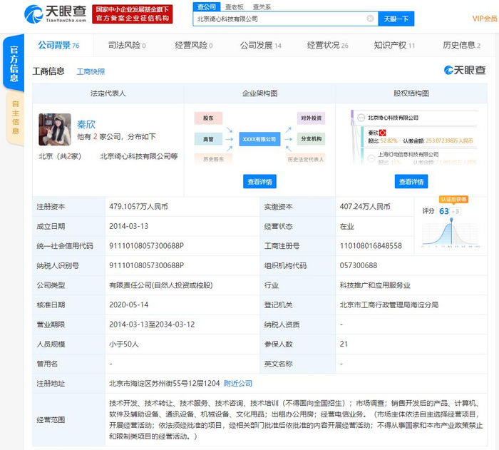 北京绮心科技有限公司成立于2014年3月,法定代表人为米画师创始人秦欣,公司经营范围包括市场调查;销售开发后的产品、计算机、软件及辅助设备、通讯设备、机械设备、文化用品;出租办公用房等。