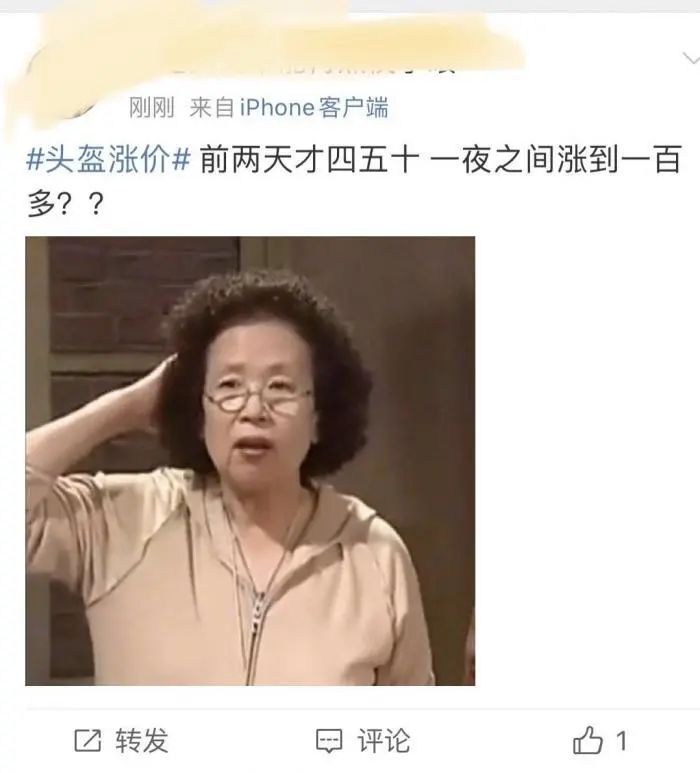 而价格飙涨之后,很快大家的眼光又从戴头盔转到了炒头盔上。