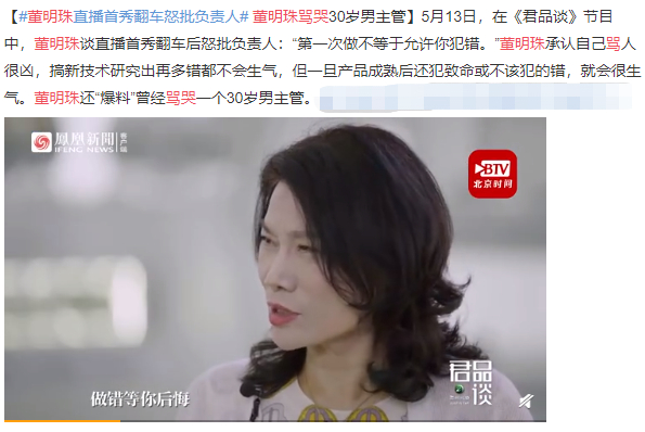 此前,董明珠分别在抖音和快手进行了两次直播。第一次因为网络卡顿以及23.25万元的销售额以失败告终,由于业绩不理想,董明珠在这场直播中,不仅怒批负责人,还骂哭30岁男主管。