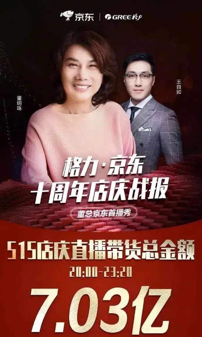 董明珠15日晚亮相京东直播,据京东数据显示,这场直播成交额突破了7.03亿元,创下了家电行业直播带货史上最高成交记录。曾经的“销售女王”也成为了“带货女王”。