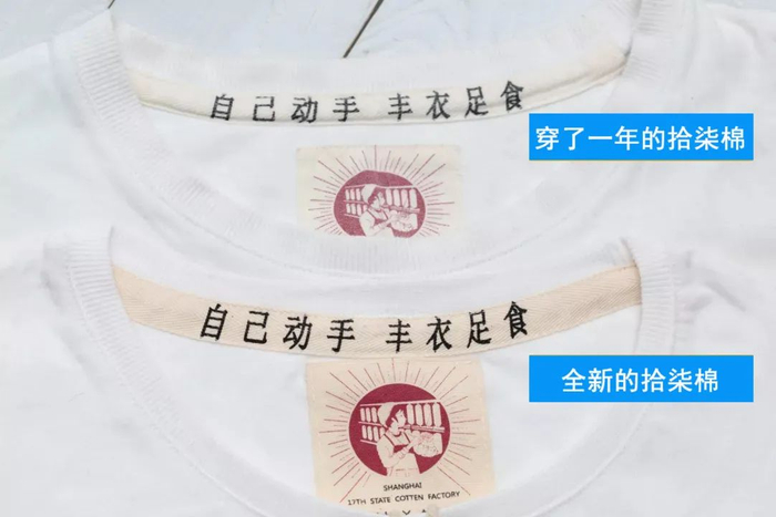 唯一的区别就是穿了一年的拾柒棉,logo颜色稍微变淡了。