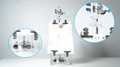 可以看到,顶部烧杯中150ml的水全部被衣服吸收掉,1滴都没有浪费。