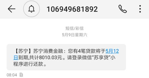 (图注:苏宁消金通知还款短信)