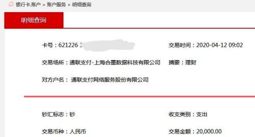 合墨数据两笔扣款的支付通道均为通联支付,扣款方为上海合墨数据科技有限公司,摘要则备注为“理财”。