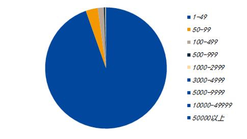 当前我国生猪养殖行业仍然是一个散户为主的行业,农户养殖占比较高,而规模场养殖比例很低。根据中国畜牧业年鉴统计数据,截止2017年,单个生猪养殖户年出栏规模在1-49头的占比最多,为3572万头,占比94.6%,年出栏50-99头的养殖户有120万户,占比3.2%。也就是年出栏在100头以内的养殖户总占比达到97.8%。与之形成对比的是,单场出栏规模在1-5万头的养殖场仅有4134个,单场出栏规模在5万头以上的仅407个。