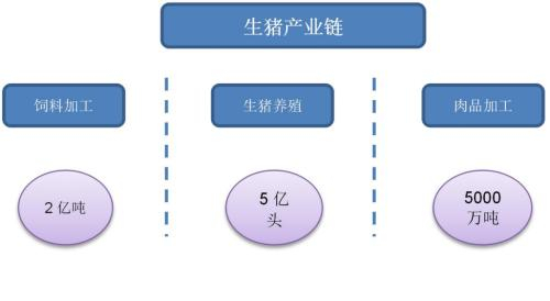 生猪行业是国计民生的大行业,产业链上游为饲料加工行业,中游是生猪养殖行业,下游是屠宰分割以及肉制品加工行业。以我国年出栏量5亿头来测算,每头生猪110公斤,生猪均价20元/公斤来粗略测算,仅生猪养殖行业年产值就可达1.1万亿。