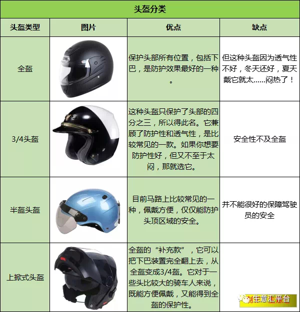 现在市面上的头盔主要分4种