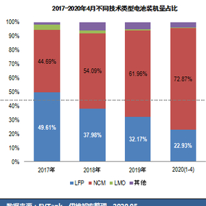 目前,三元锂电池一骑绝尘,研究机构EVTank最新的数据显示,今年1~4月,国内三元锂电池(NCM,正极材料为镍钴锰三种材料)装机量占比升至72.87%,而磷酸铁锂电池(LFP)的装机量进一步跌至22.93%,锰酸锂电池(LMO)以及其他电池加起来占的比例不足5%。这与前几年的动力电池格局明显不同,就在2017年,磷酸铁锂电池与三元锂电池的装机量占比分别是49.61%和44.69%,但次年前者就被后者赶超,且差距逐年拉大。