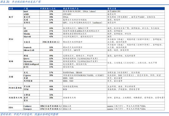 2)华为生态链,光学芯片、存储、模拟、射频、功率、FPGA、处理器及IP等产业机会。