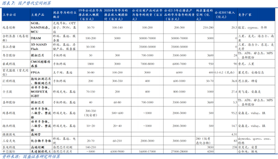 具备可见、可触及的下游广阔空间,或者能通过品类扩张切入更大的市场空间:全球800-1000亿美金的DRAM、500-700亿美金的NAND Flash、500-600亿美金的模拟芯片、200亿美金的CIS芯片有望深水养大鱼,出现大体量龙头公司;