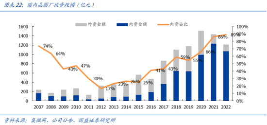 国内晶圆厂投资金额即将进入高峰期。将根据统计,2020~2022年国内晶圆厂总投资金额约1500/1400/1200亿元,其中内资晶圆厂投资金额约1000/1200/1100亿元。2020~2022年国内晶圆厂投资额将是历史上最高的三年,且未来还有新增项目的可能。