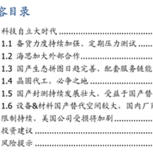 1)配套服务产业链,代工、封测、设备、材料国产化机遇;