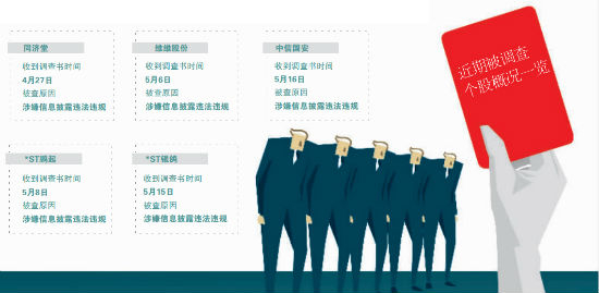 最新被立案调查的是中信国安。5月17日晚间,中信国安公告称,公司因涉嫌信息披露违法违规,在5月16日收到调查通知书。同日晚间,*ST银鸽也发布公告称,公司5月15日收到证监会调查通知书,加入到被调查股的行列中,被查原因为*ST银鸽涉嫌信息披露违法违规。针对中信国安、*ST银鸽被查涉及事项相关问题,北京商报记者分别致电中信国安、*ST银鸽进行采访,但对方电话均未有人接听。
