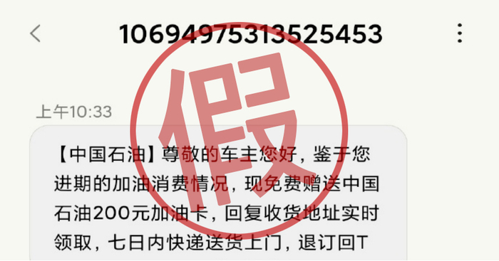 小编负责任地讲,这完全是一场骗局,上面这条短信破绽百出,中国石油不会以此种形式免费赠送加油卡实物,而且短信中竟然还有一个错别字“进”期。