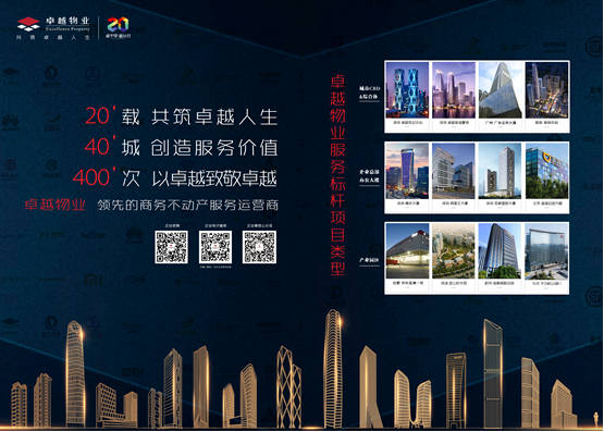 卓越物业秉承“中国领先的商务不动产服务运营商”的企业发展愿景,以提供特色物业服务为基础,实现全业态多元化的组合,形成不动产全生命周期服务运营管理的完整业务链条。公司物业管理服务类型涉及高端商务写字楼&商务综合体、企业总部、企业综合办公场所、高新产业园区&现代物流园区、数据中心、政府公共建筑、高尚人文住宅&酒店式服务公寓、高等院校&国际学校等不动产物业的咨询顾问、资产运营管理、综合设施管理、企业综合行政后勤一站式服务等综合管理服务。