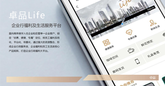 作为客户眼中“一家有思想的物业公司”,卓越物业会为不同企业定制个性化服务。卓越物业企业LIFE ,通过搭建线上平台及线下复合空间,无缝连接多重感官体验,为企业提供定制化的场景服务和一站式员工商务生活解决方案。线上平台主要通过便捷服务、专属服务、职场生活来满足企业客户员工福利需求;线下服务复合空间可提供餐饮轻食、主题体验、品鉴日等社区活动,丰富商务生活多重体验。
