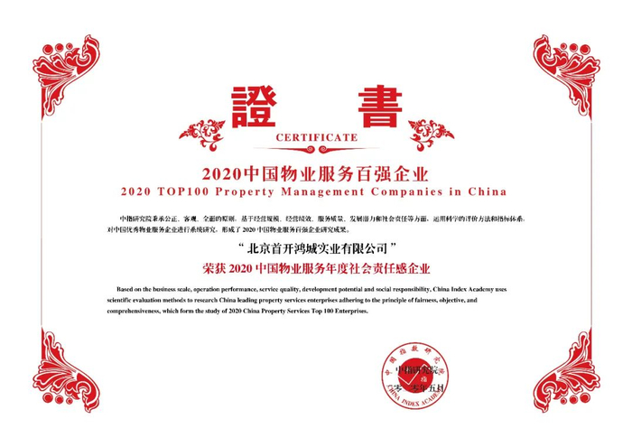 凭借“责任物业”的品牌理念,“您的信任,我的责任”的品牌主张,首开物业一直在立志“打造中国最值得信赖的物业服务企业”的道路上探索前行,并以其优异的表现荣膺“2020中国物业服务百强企业”、“2020中国城市物业服务领先企业”、“2020中国物业服务年度社会责任感企业”、“2020中国物业服务百强满意度领先企业”、“2020中国物业服务百强服务质量领先企业”荣誉。