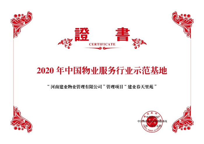 建业新生活践行建业集团“根植中原,造福百姓”的核心价值观,打造引领新型生活方式的服务体系,秉承“让河南人民都过上好生活”的企业使命,致力于打造新型生活方式服务平台。建业新生活以其优异的表现荣膺“2020中国物业服务百强企业”。建业物业管理的建业凯旋广场荣膺“2020中国五星级物业服务项目”、建业春天里苑荣获“2020中国五星级物业服务项目”及“2020中国物业服务行业示范基地”两大奖项。