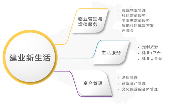建业新生活深耕美好生活价值链,致力于通过美丽乡村、资产配置、度假休闲、旅游商务、娱乐休闲、智能家居、绿色健康及酒店式高端等一系列全维度的高品质生活服务和产品,创建生活共享、智慧共融、商务合作、投资共赢的共享平台,形成物业管理与增值服务、资产管理、生活服务等三大板块协同发展。通过整合优质资源提供个性化、定制化、差异化的产品和服务,为中原人民创造全新的生活方式和幸福源泉。