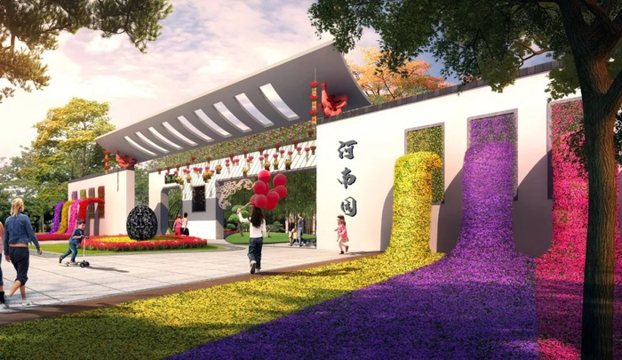 河南园位于花博园省(区、市)室外展园片区的中心位置,占地面积3000平方米;设计主题为“中州花语、鼎盛花繁”,旨在通过提炼传统文化元素,构建场地肌理,行山形水盛之静,谱写中原建设新篇章。