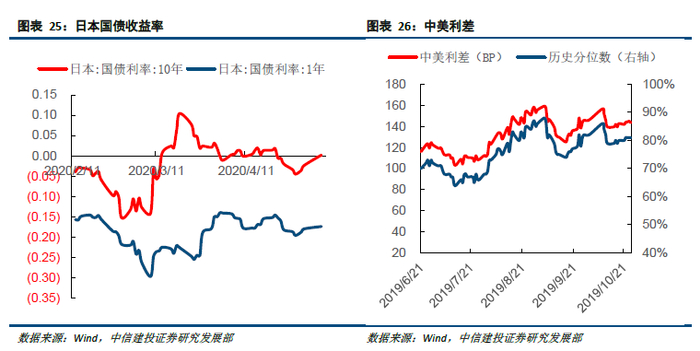 全球债券市场:美国10年期美债收益率为0.64%,1年期美债收益率为0.15%,利差为0.49%;德国10年期债券利率为-0.49%,1年期债券利率为-0.63%,利差为0.14%,日本10年期债券利率为0.002%,1年期债券利率为-0.176%,利差为0.178%。上周美国长、短端收益率小幅上行,期限利差增大;德国长、短端收益率小幅下行,期限利差小幅收紧;日本长、短端收益率小幅上行,利差整体不变。