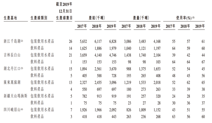 农夫山泉水源地的水暂时是够用的。从水源地的产能和产量来看,农夫山泉的水源主力依然是千岛湖、长白山和广东万绿湖和湖北丹江口四处水源,其中使用率最高的千岛湖,在饮用水生产上的使用率也只有61%,还远未饱和。