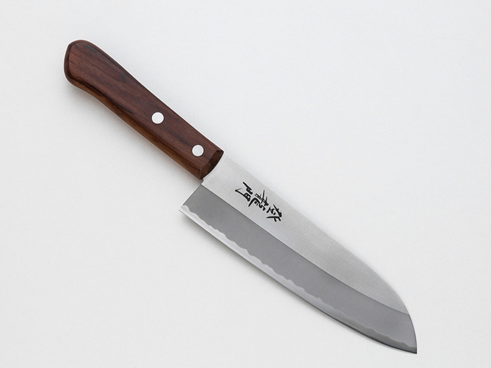 藤次郎钴合金钢三德刀,刃长175mm,全长285mm。