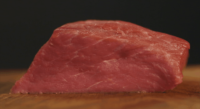 好刀的刀面细腻密实,刀刃直接能将肉划开。