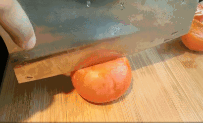 利刃划过之处,除了平整的切口以外,蔬果本身的组织结构几乎没有受到破坏。
