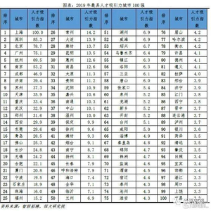 2.1中国最具人才吸引力城市100强:沪深京居前三