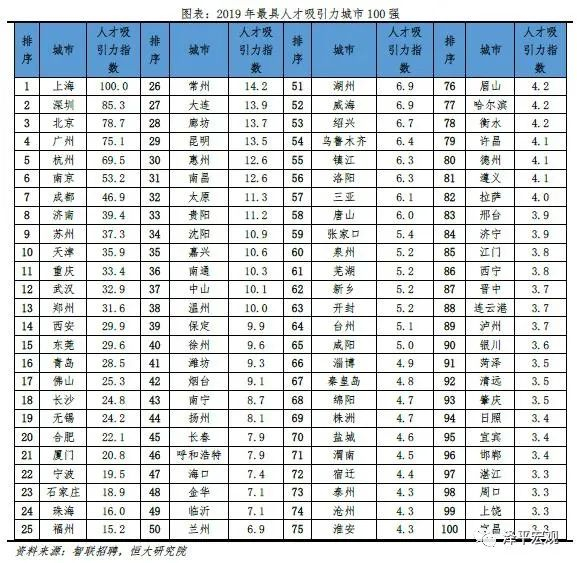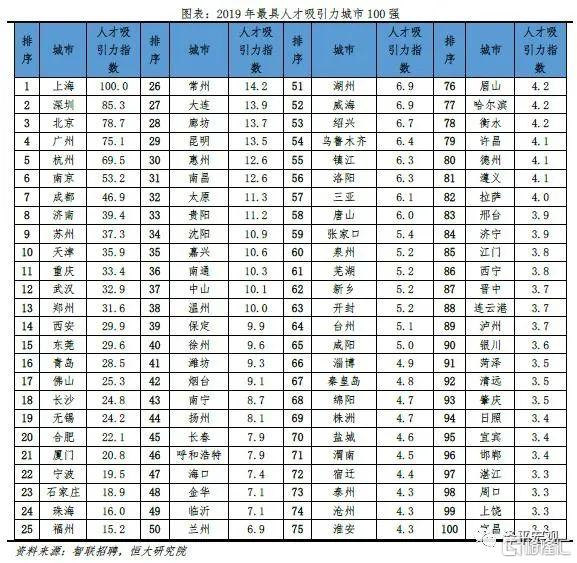 2.1 中国最具人才吸引力城市100强:泸深京居前三