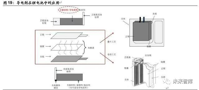 锂电池的主要材料包括正极材料、负极材料、电解液和隔膜。锂电池正极常采用层状钴酸锂、锰酸锂、镍钴锰酸锂等作为活性材料,这些活性材料导电性存在一定限制,导致电极的内阻较大、放电深度不够,结果会导致活性材料的利用率低、电极的残余容量大。而导电剂作为一种关键辅材,可以增加活性物质之间的导电接触,提升锂电池中电子在电极中的传输速率,从而提升锂电池的倍率性能和改善循环寿命。