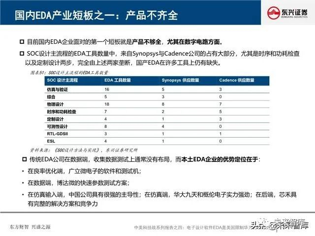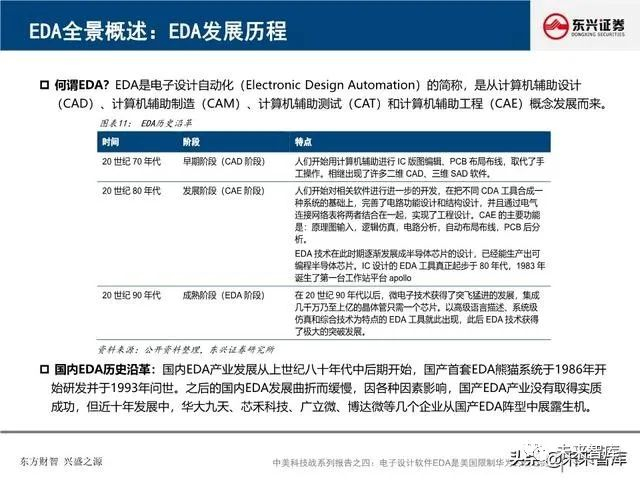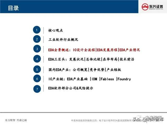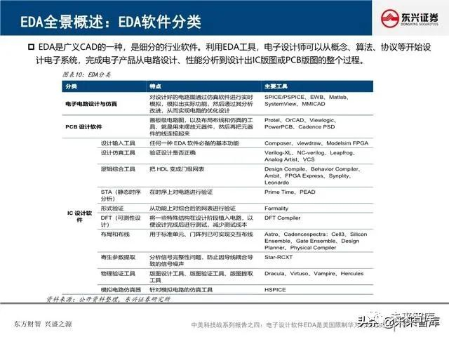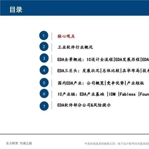 EDA是芯片之母,是芯片产业皇冠上的明珠:EDA软件工具涵盖了IC设计、布线、验证和仿真等所有方面。EDA是集成电路设计必需、也是最重要的软件工具,EDA产业是IC设计最上游、最高端的产业。