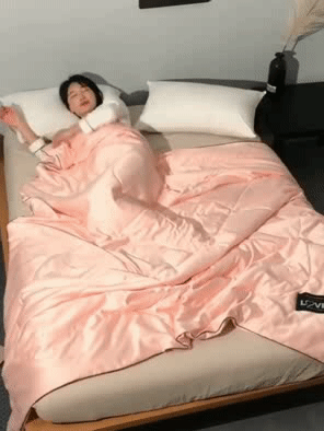 夏天盖,体感温度能直接降2-3度,瞬间抚平燥热,那叫一个爽!就像抱着一个小空调在睡觉,全身都能感受到丝丝凉意~