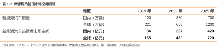 根据我们的预测, 2025年全球及国内热管理市场空间分别可达720亿元、420亿元,2019至2025年全球和国内热管理市场年均增速分别达29.2%和30.8%。