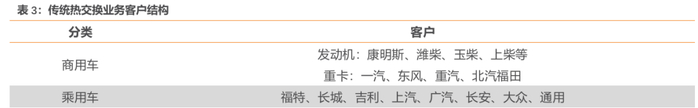 核心竞争力:具备优秀的产品延伸及客户拓展能力。公司深耕汽车热交换领域,拳头产品油冷器和中冷器竞争优势突出,在国内商用车市场份额分别达到约45%和35%。公司成长路径清晰,以传统优势业务为基础,持续进行产品延伸及客户拓展:产品沿着从单品到总成、从传统车到新能源车的路径升级;客户从原有优质商用车客户拓展至乘用车客户,乘用车客户亦由自主品牌向合资及外资品牌优化。