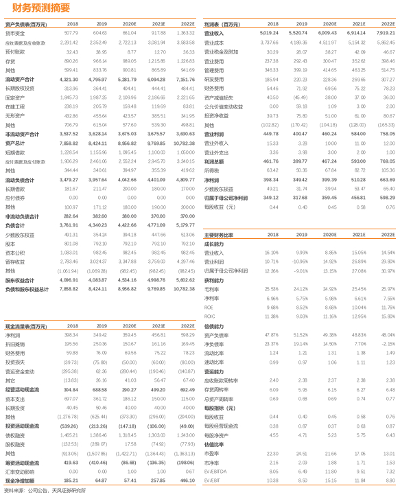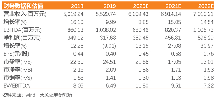 我们预计公司2020年至2022年实现营业收入60.1亿元、69.1亿元、79.2元,归母净利润分别为3.6亿元、4.6亿元、6.0亿元(前值分别为3.4亿元、4.1亿元和5.3亿元),EPS分别为0.45元、0.58元、0.76元,对应的PE分别为21.7倍、17.0倍和13.0倍。