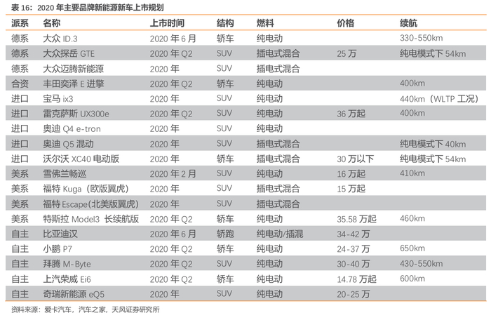 (4)供给端正全面打开:特斯拉上海工厂产能正持续爬升,国产Model Y或于年内推出;2020Q2开始,宝马、奥迪等豪华品牌将加速导入新能源车型,大众MEB首款新车预计也将在年内上市,各大品牌纷纷布局新能源车市场,新能源汽车供给端正全面打开,消费者可选择的优秀产品将越来越多。