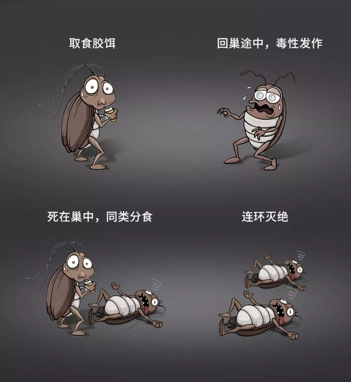 换句话说,就算有新来的蟑螂,只要吃了杀蟑胶饵,也会很快中毒,彻底防止蟑螂建巢!