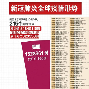 根据WHO数据显示,截至北京时间20日16时数据,全球累计新冠肺炎确诊病例达到4845115例,其中死亡323353例。